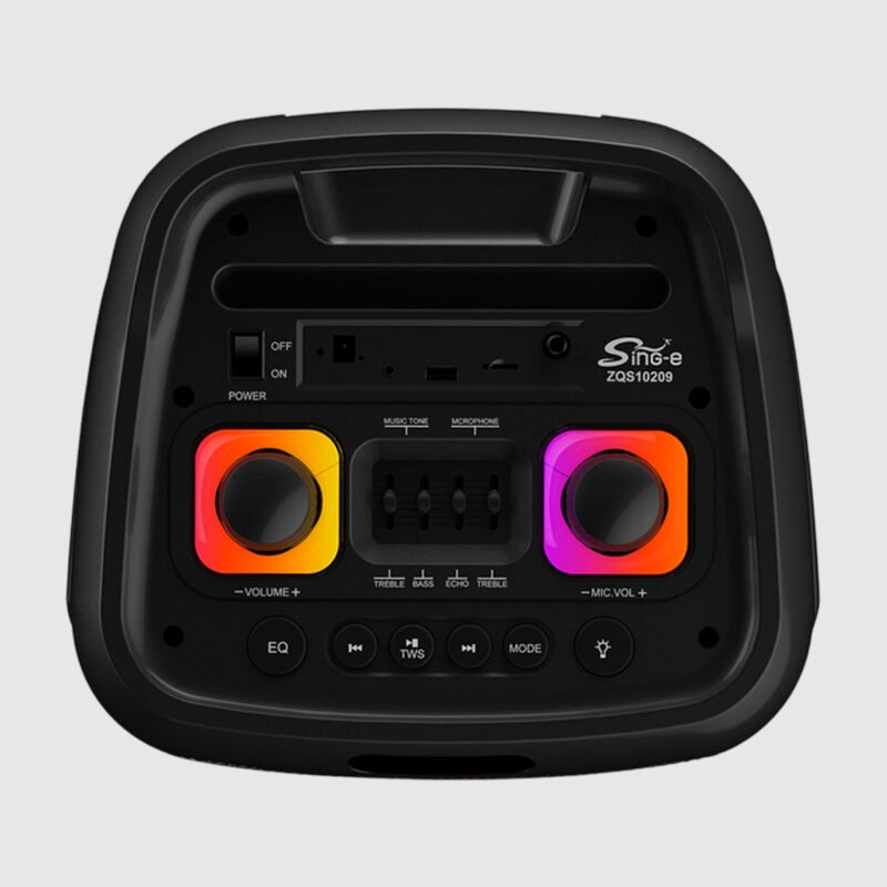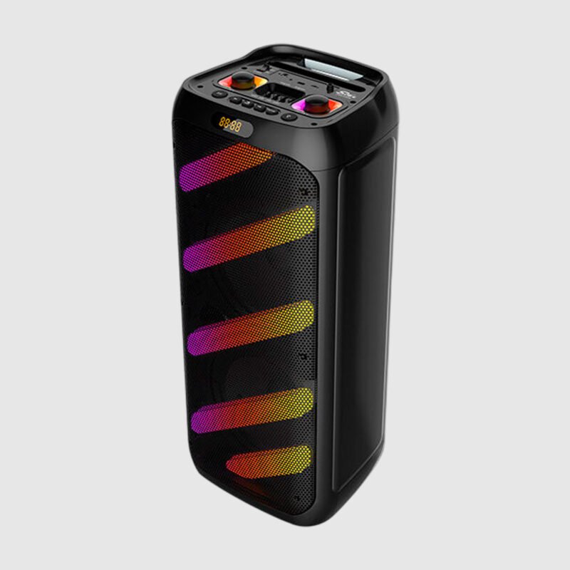 Transforma cualquier momento en una fiesta con este potente parlante Bluetooth de 50W. Diseñado con subwoofers de alta calidad y luces LED, es ideal para karaoke, eventos al aire libre o en casa. Incluye dos micrófonos inalámbricos y control remoto para máxima versatilidad.