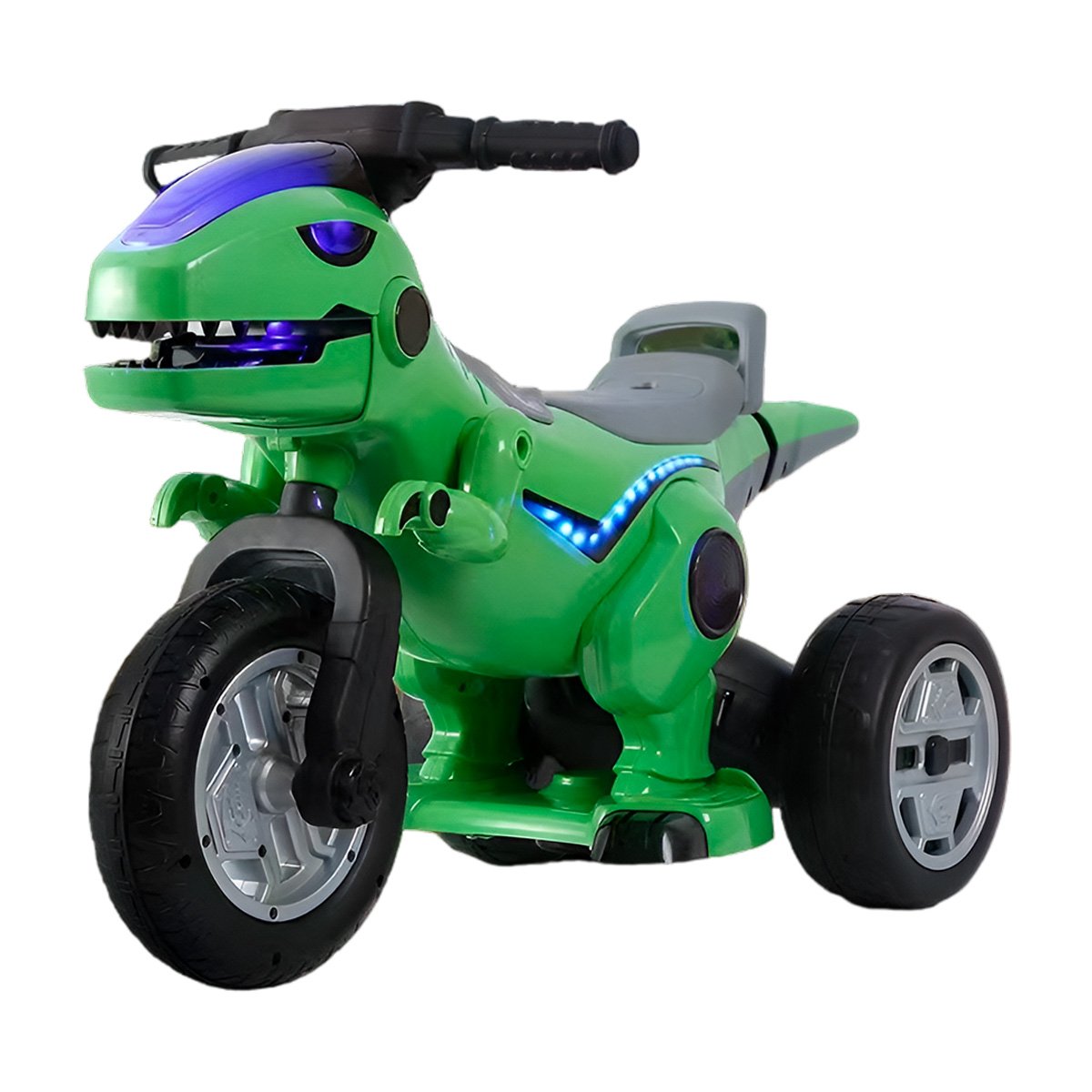 La moto eléctrica infantil en forma de dinosaurio es perfecta para los más pequeños que desean aventuras al aire libre. Con doble motor de 380W, batería de 12V 4.5A, y una estructura robusta de tres ruedas, garantiza seguridad y diversión. Incluye efectos de sonido realistas, luces LED y conectividad Bluetooth para reproducir música. Ideal para niños de 1 a 6 años.