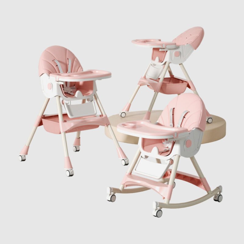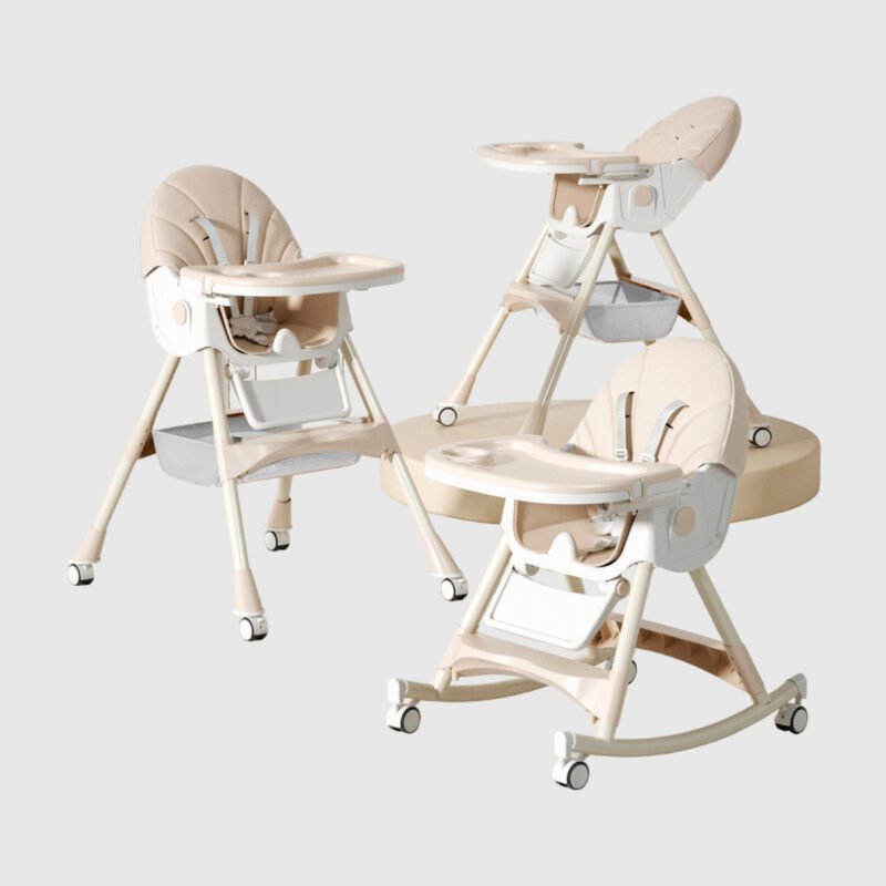 Esta silla de comer para bebés es multifuncional, ajustable y portátil, ideal para acompañar el crecimiento de los niños desde los 6 meses. Con bandeja extraíble, reposapiés y ruedas giratorias para mayor movilidad, se convierte también en mecedora, brindando comodidad y seguridad a la hora de comer.