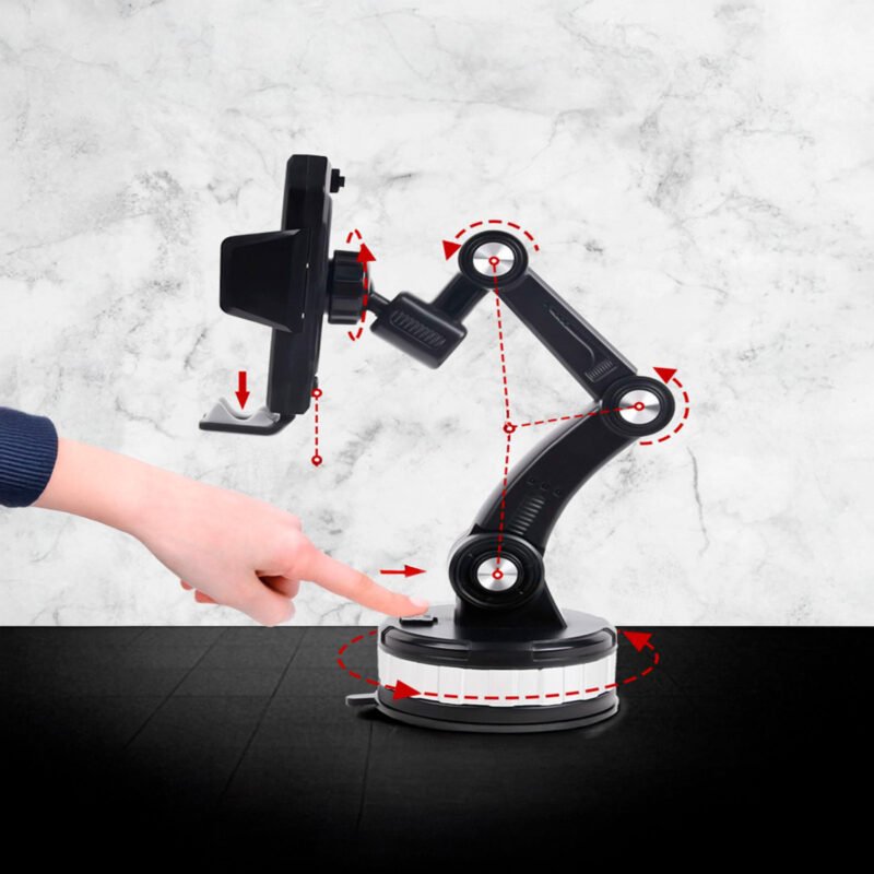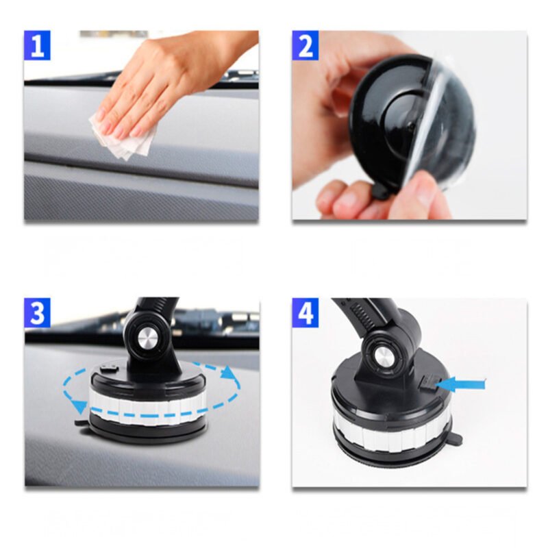 • Base de succión resistente para una fijación segura en el parabrisas o tablero.