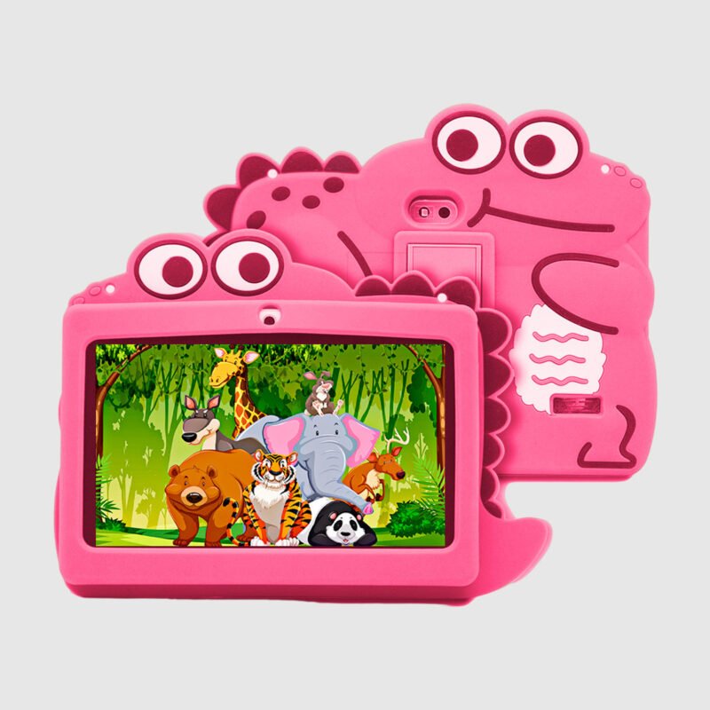 La tablet educativa infantil de 7 pulgadas con diseño de cocodrilo es perfecta para el entretenimiento y aprendizaje de los más pequeños. Con una pantalla IPS de alta resolución de 1280×800, procesador de cuatro núcleos MTK9832, 16GB de almacenamiento y una batería de 4000mAh, esta tablet garantiza horas de diversión y educación segura.